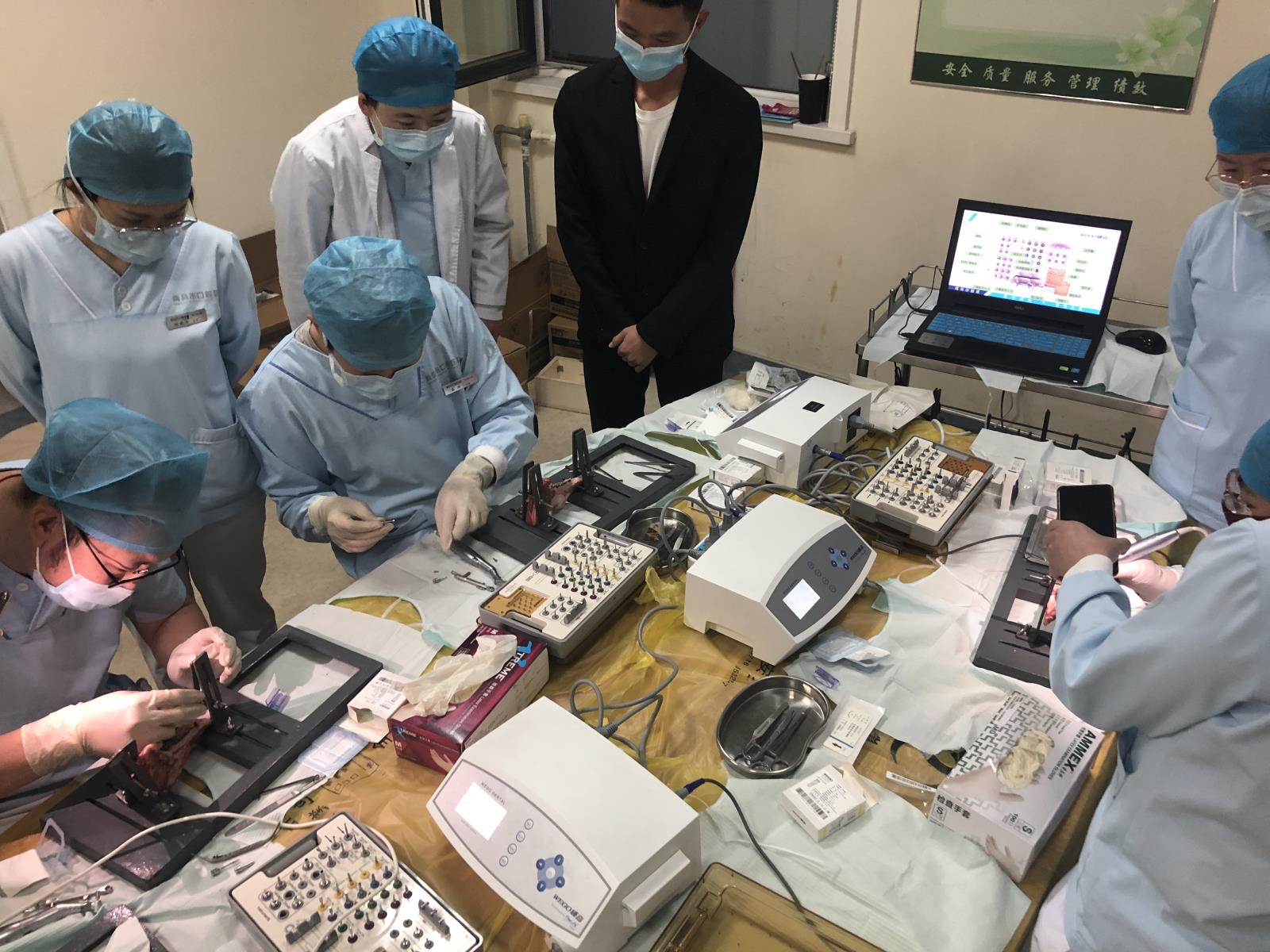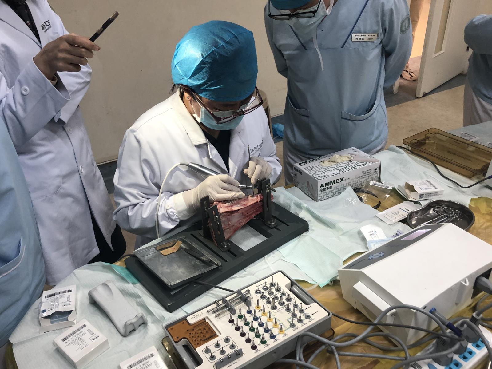 在此次豬頭實操課上,牙周科主任吳迎濤使用威高牙種植體系統(tǒng)對牙周科全體醫(yī)生進(jìn)行培訓(xùn),目的是通過此次培訓(xùn)讓青島口腔醫(yī)院牙周科的醫(yī)生們熟悉并學(xué)會使用威高潔麗康的牙種植體系統(tǒng),以便快速開展種植牙工作。